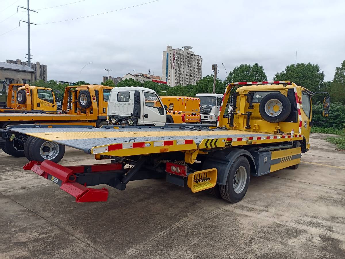 上装配置:一体翻转下沉板,5MM花纹板冲孔,竖寸(两边),主油缸:105#外径,举伸缸:95#外径,4吨卷扬,板长:5.6米,(主板:4.2,尾板:1.4米),通心轴,8MM厚滑槽,14个厚薄边框打孔,双通副梁,滑槽前端用锰钢加强,后托臂成一套,后托臂挂主梁,七字叉一对,抱胎桶一对,1个工具箱,挡胎2个,4根绑带。抛丸,喷粉,烤漆