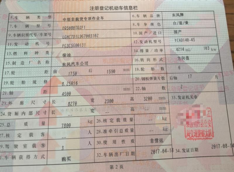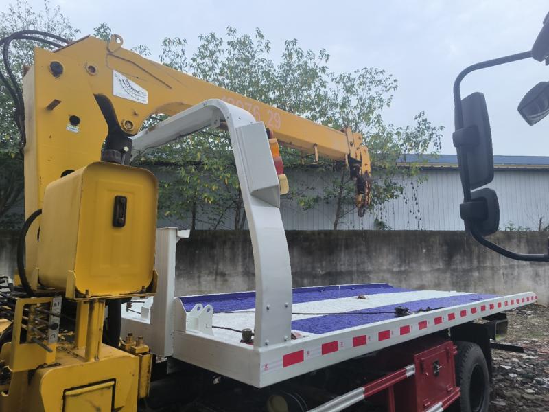 国四17年8月多利卡D8带4吨3节吊 玉柴140马力发动机,万里扬5档变速箱,4.5米轴距,8.25R16真空胎,东风6吨花纹板,板长5.6米,宽2.3米,6吨拖臂,5吨绞盘,保险年审同步