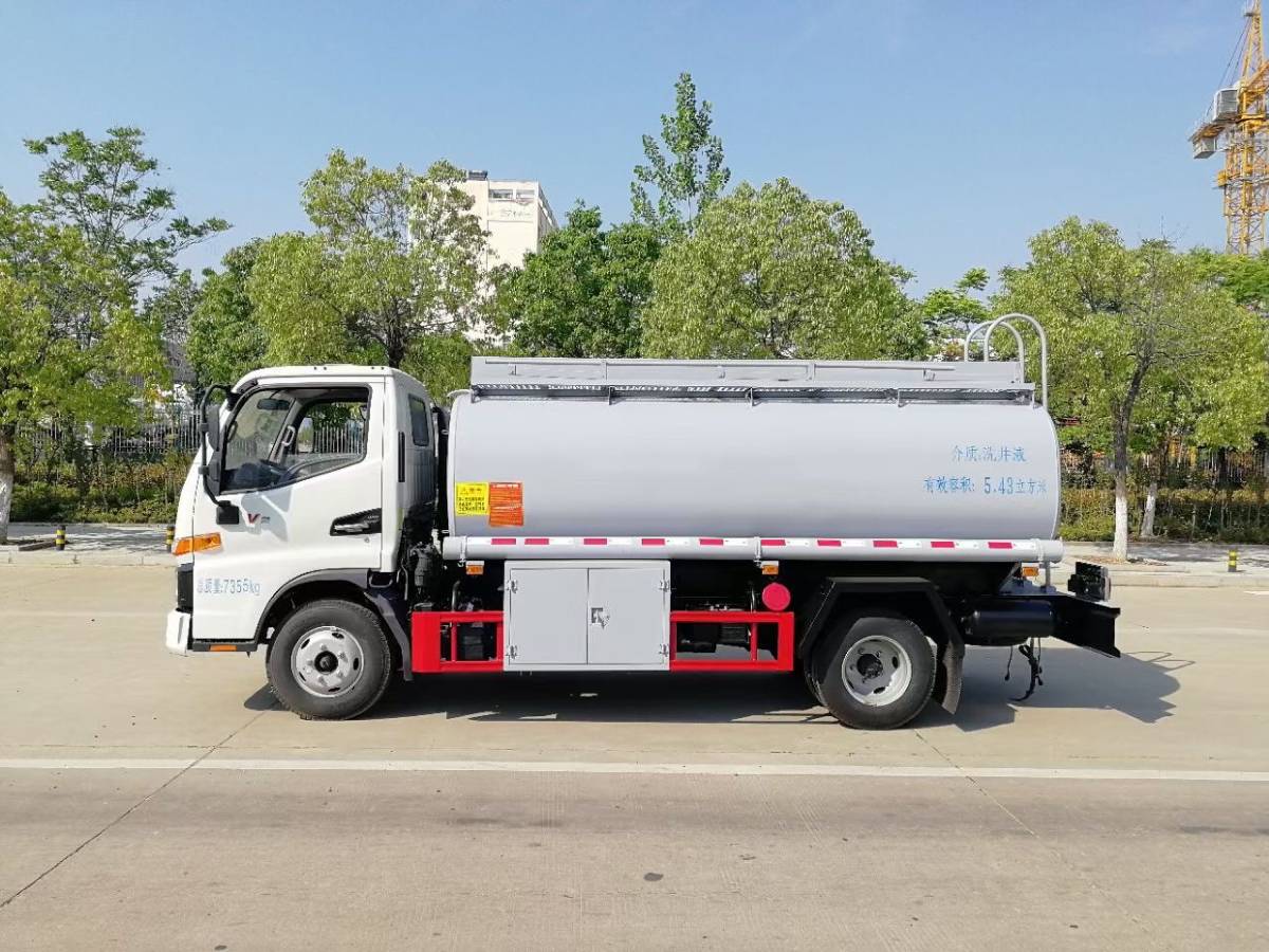 (1)底盘配置:采用国六江淮底盘,3365mm轴距,云内150马力,6档箱,700钢丝胎。原装空调电动玻璃中控锁。 (2)上装配置:严格按照公告尺寸外观制作,公告有效容积:5.43立方,实际容积7方,方圆罐,罐体厚度4MM,带60-30自吸自排泵,泵进泵出装在右侧,带一个欧标罐口,一个海底阀,罐体尾部加装紧急切断阀按钮,预留大流量供液设备及15米自动卷盘位置,带网状走道,水压封头,折叠护栏,两根输油管,带一个工具箱,两个灭火器,欧式锁,带牌照灯座,静电带,其余厂内标配