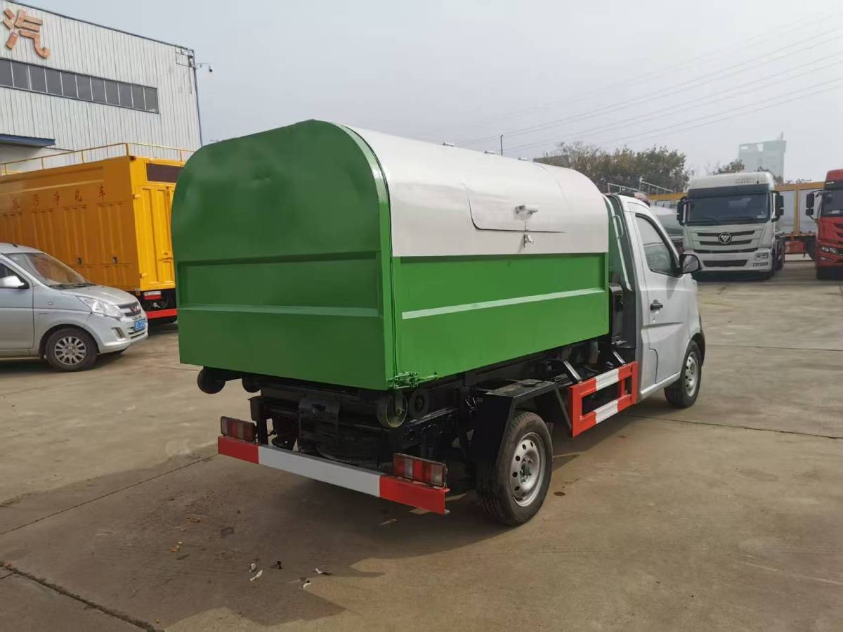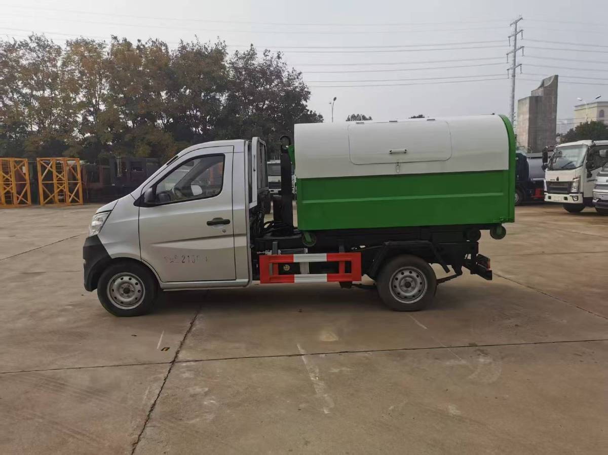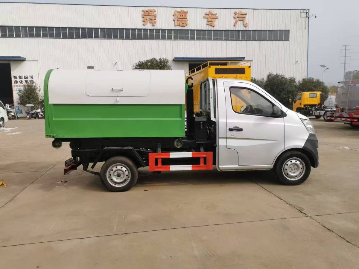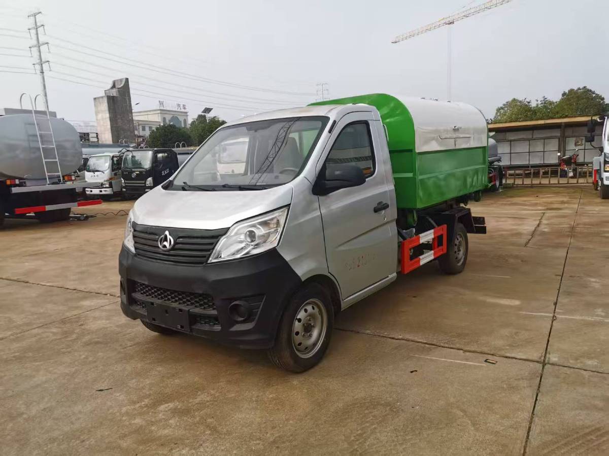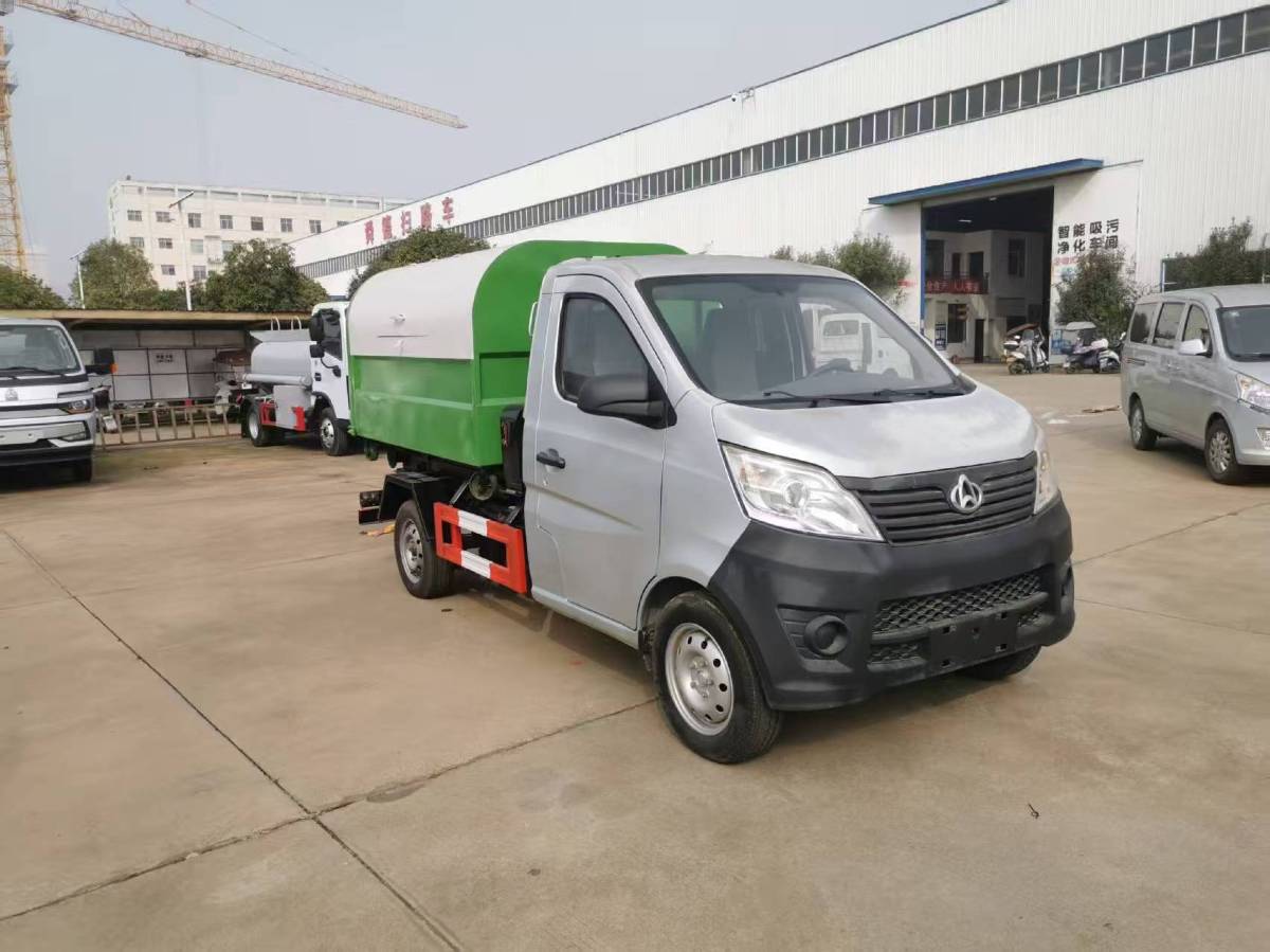 (1) 底盘配置:采用长安底盘,轴距2900MM,长安98马力,175/70R14轮胎8PR轮胎。 (2)上装配置:严格按照公告尺寸及图片制作,可卸式垃圾车伸缩式大臂,国产油缸,多路阀,多路阀驾驶室控制,其他厂家标配。垃圾箱一个约2.5方。
