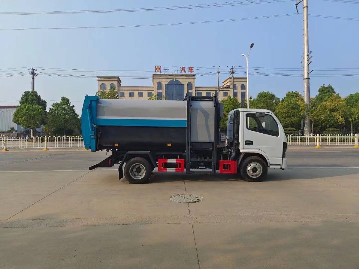 (1)底盘配置:采用国六东风底盘,轴距3308 ,朝柴130马力,700钢丝胎。 (2)上装配置:严格按照公告尺寸样式制作,箱体边3底4,容积7.5方,带拉杆提升装置(可挂240升塑料垃圾桶),国产多路阀,带自卸功能,带双缸中顶,后门带密封条,其他厂家标配.
