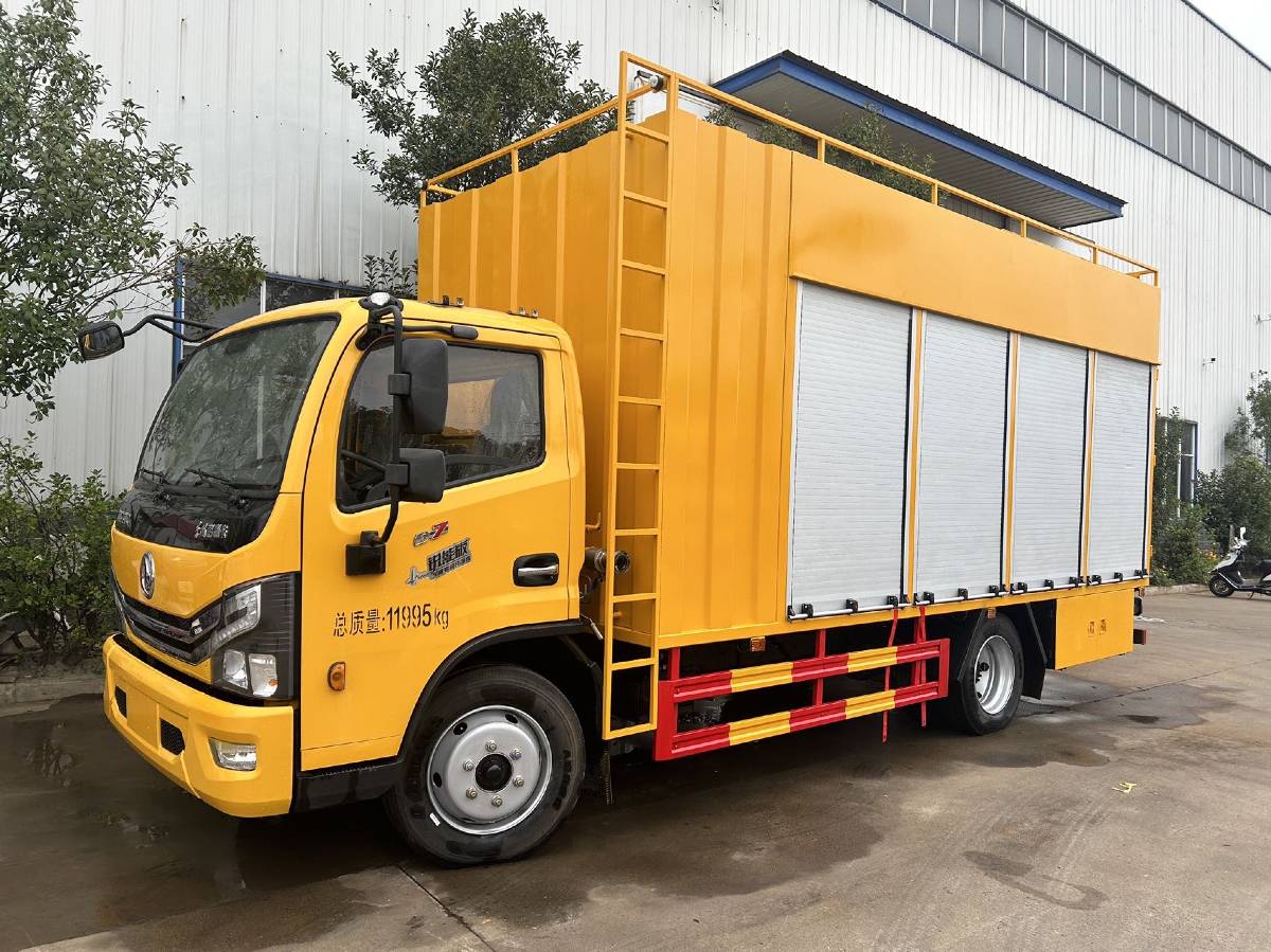 底盘配置:采用东风多利卡底盘,轴距3800,玉柴165马力发动机,6档变速箱,中控锁,电动门窗,空调. 上装配置:车载江苏叠螺机一台,304不锈钢加大絮凝搅拌箱一套,潍坊50KW交流同步发电机,215流量高压泵,60米高压管,山东淄博11KW真空泵一台,304不锈钢手动加药箱,污水箱碳钢材料制作,侧板为碳钢,底板碳钢材料制作,后门为平开和单色LED显示屏结构,工具箱侧防护为碳钢材料制作。DN100吸污管、排水管4根6米