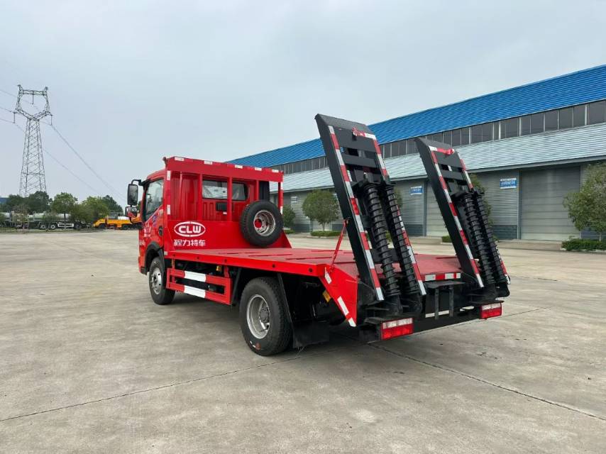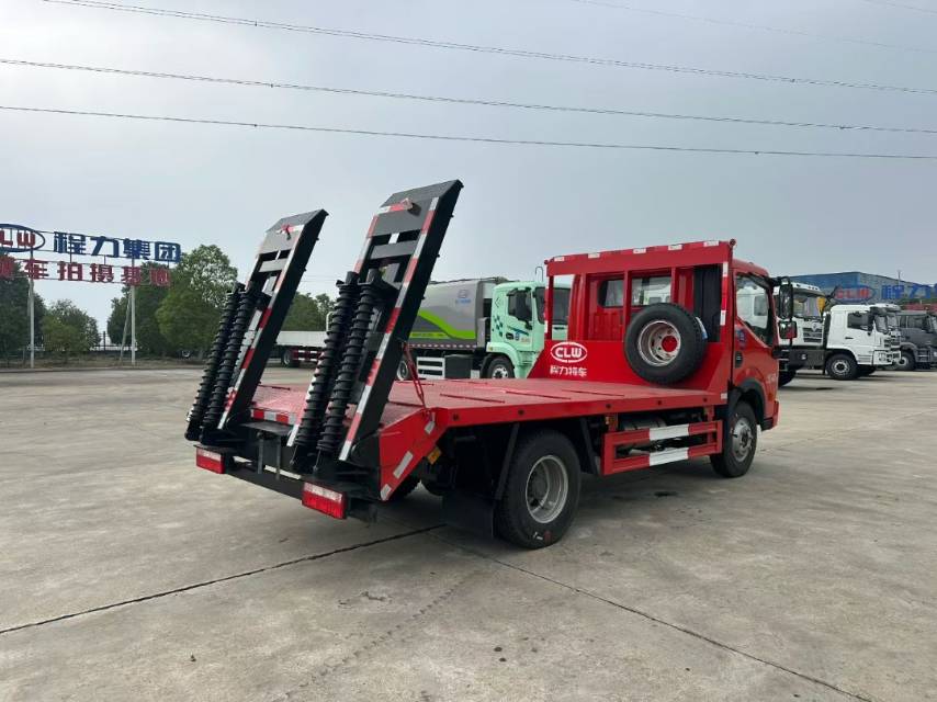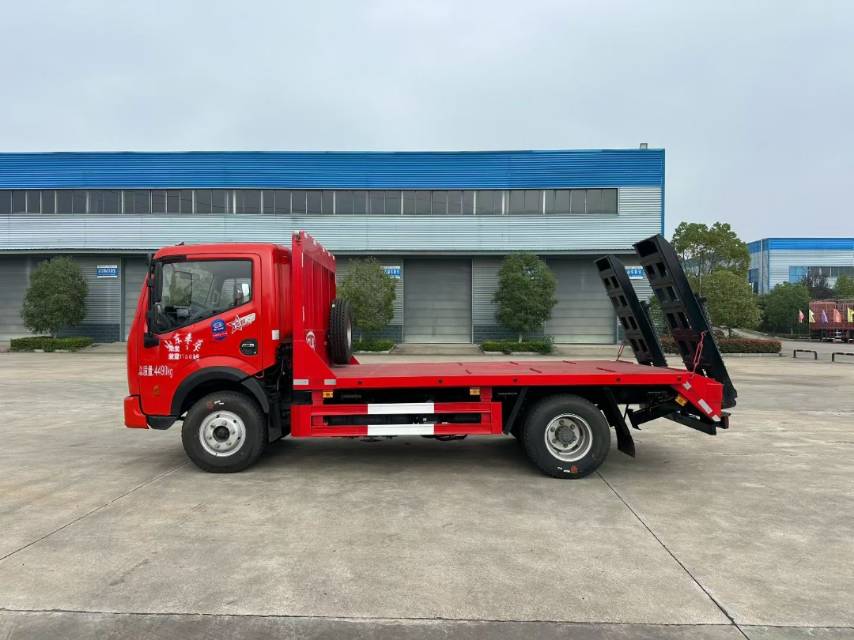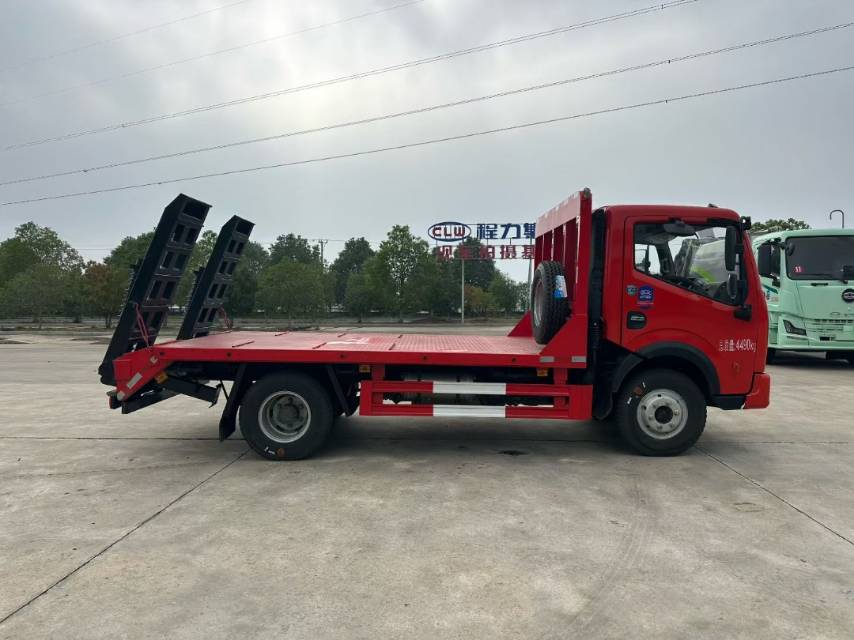 东风多利卡蓝牌平板拖车,适合托运60/75/85小挖机,可选装自卸,C证驾驶,购车可包户! 星云宽体单排驾驶室,云内160马力,长泰8档变速箱,6吨后桥,200mm双层大梁,700R16钢丝胎。标配电动门窗,遥控中控锁,原厂空调,多功能方向盘,ABS,断气刹。 轴距3308mm,整车外形5995×2100×2355mm,板长4米,适合拉8吨左右的小挖机。