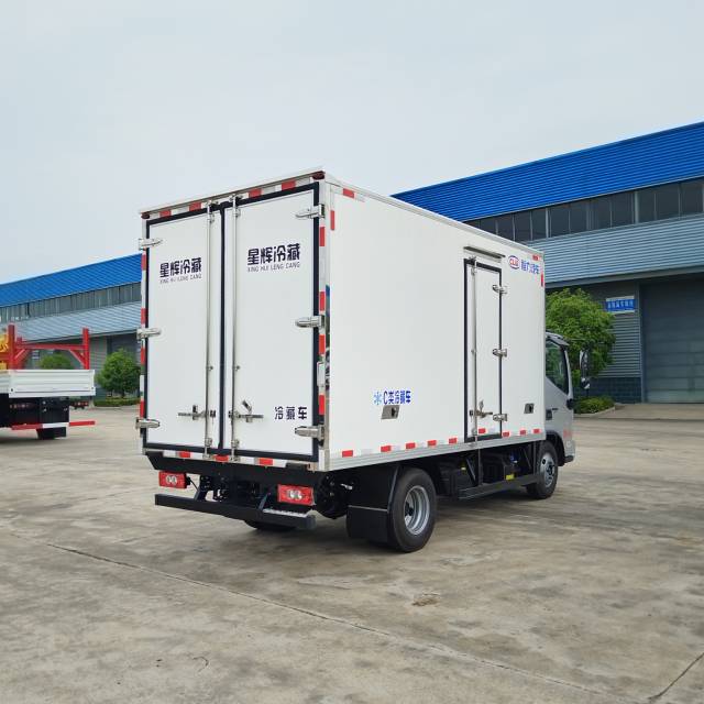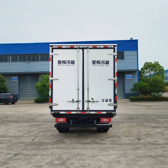 (2)地板采用塑钢花纹板,厢内侧面带15厘米围裙,箱体内直角包边,前部排水孔,门边条采用迷宫式橡胶密封条,亮光不锈钢门框。